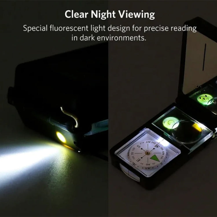 10 in 1 (Thermometer, Hygrometer, LED light, Reflector, Spirit level, Compass, Whistle, Flint, Magnifier, Ruler) Multi-Function Portable Compass, 10 in 1