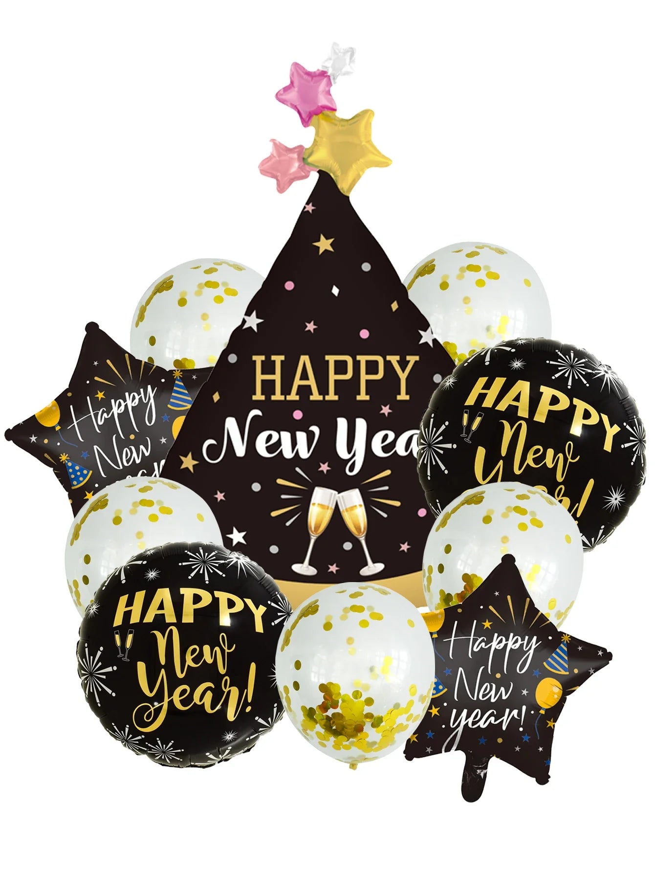10pcs Happy New Year Champagne Bottle Balloon Set New Year Party Decorations Navidad 2024
