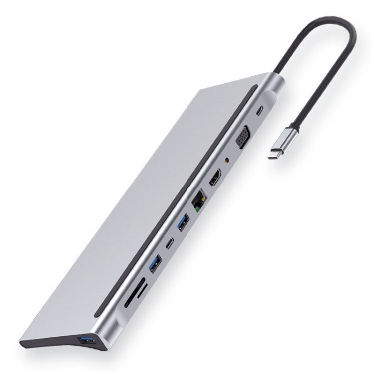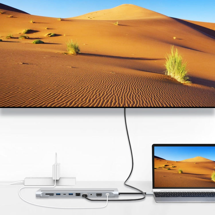 11 in 1 RJ45 + 87W PD + SD/TF + USBx3+ HDMI + VGA + 3.5mm AUX to Type-C HUB Adapter, 11 in 1