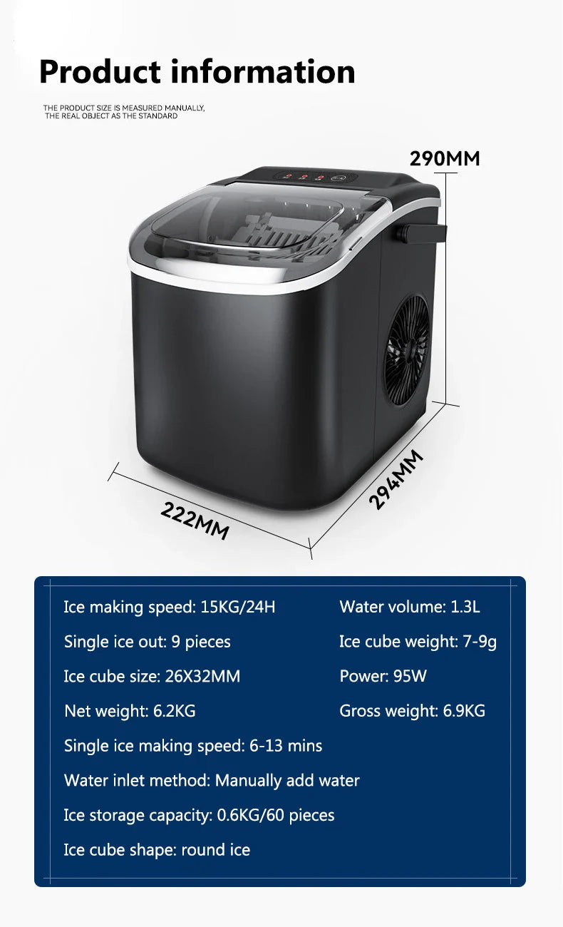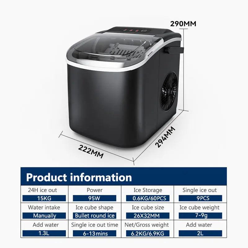 Ice storage capacity: 0.6KG/60 pieces