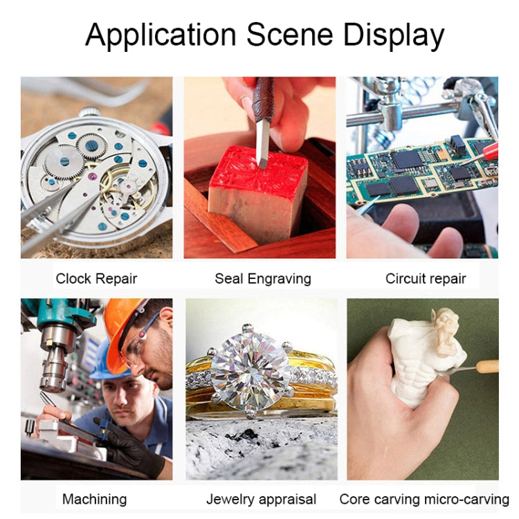 3. Application scenarios: watch maintenance, seal engraving, circuit maintenance, machining, jewelry identification, fruit core carving, micro-carving