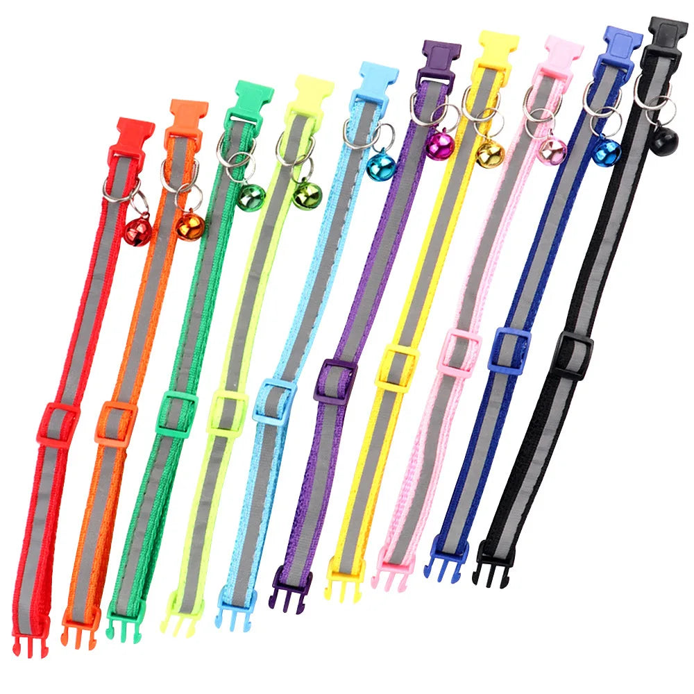 1PC Colors Reflective Breakaway Cat Collar Neck Ring Necklace Bell Pet Products Safety Elastic Adjustable Pet Reflective Collar