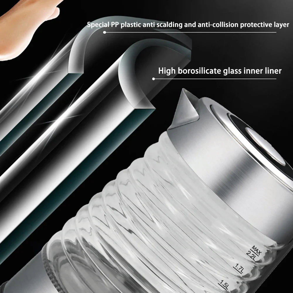 2.2L Portable Kettle Electric Tea Pot Smart Glass Stainless Steel Coffee Teapot Port Kitchen 220V For Boiling Water AU 전기포트 주전자