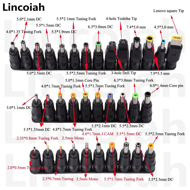 34PCS Universal 5.5mmx2.1mm DC AC Power Adapter Tips Connector Kits for Lenovo Thinkpad Laptop Power Supply Plug Jack Sets