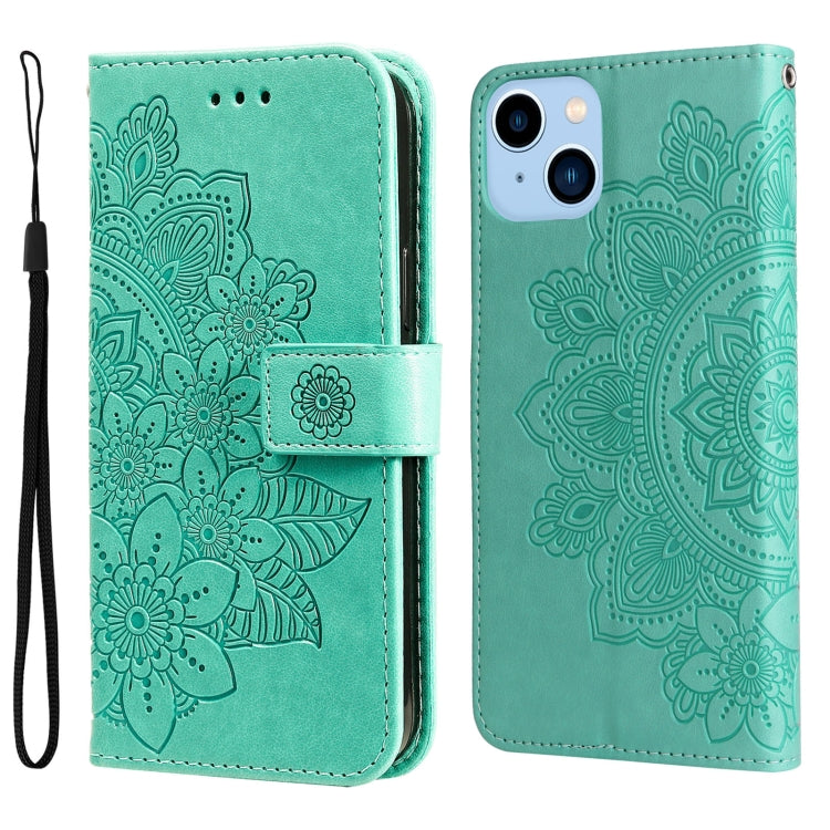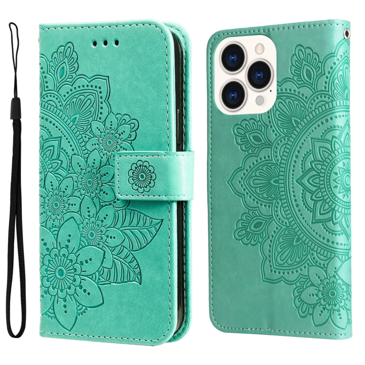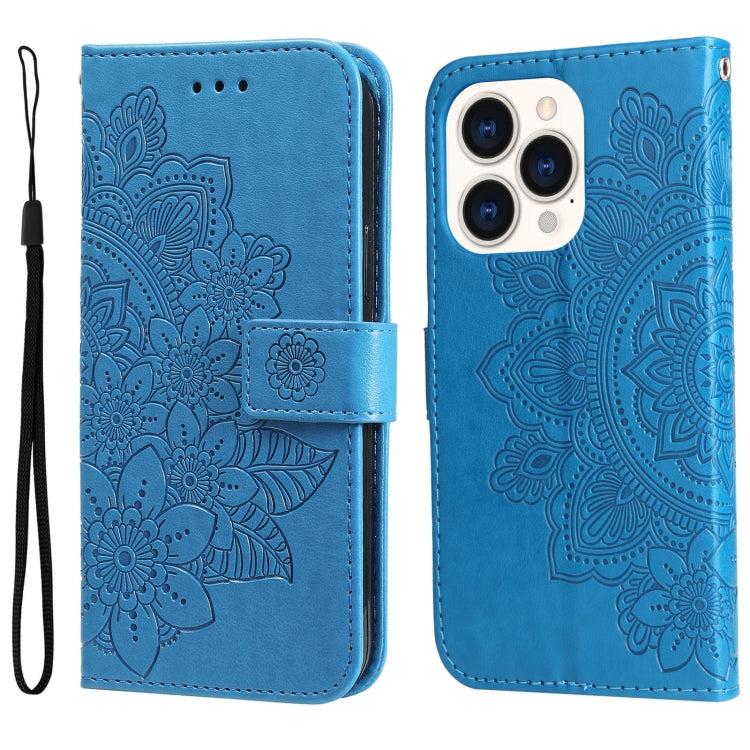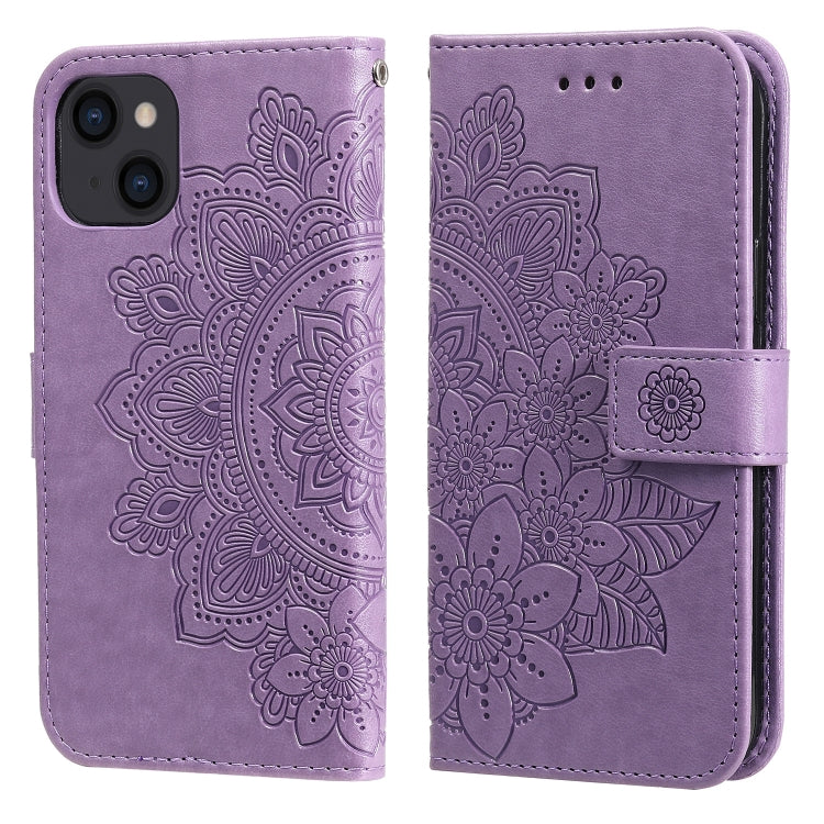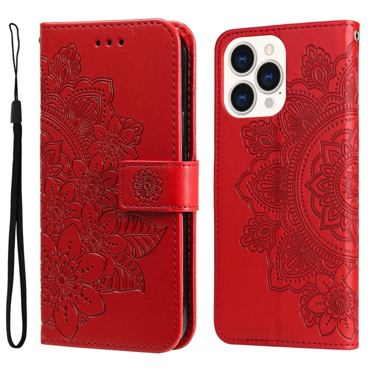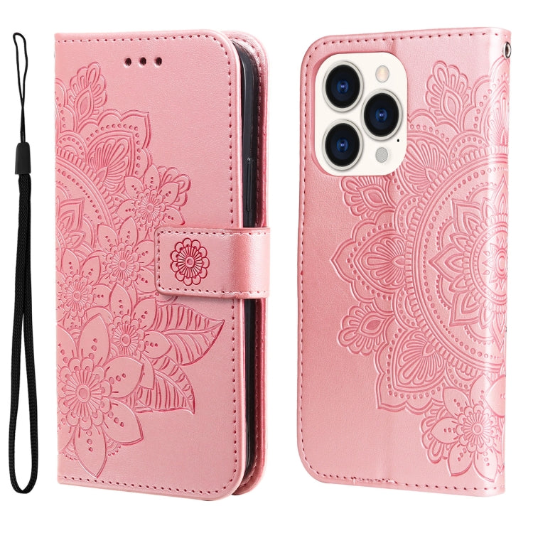 7-petal Flowers Embossing Leather Case, For iPhone 14, For iPhone 14 Plus, For iPhone 14 Pro, For iPhone 14 Pro Max