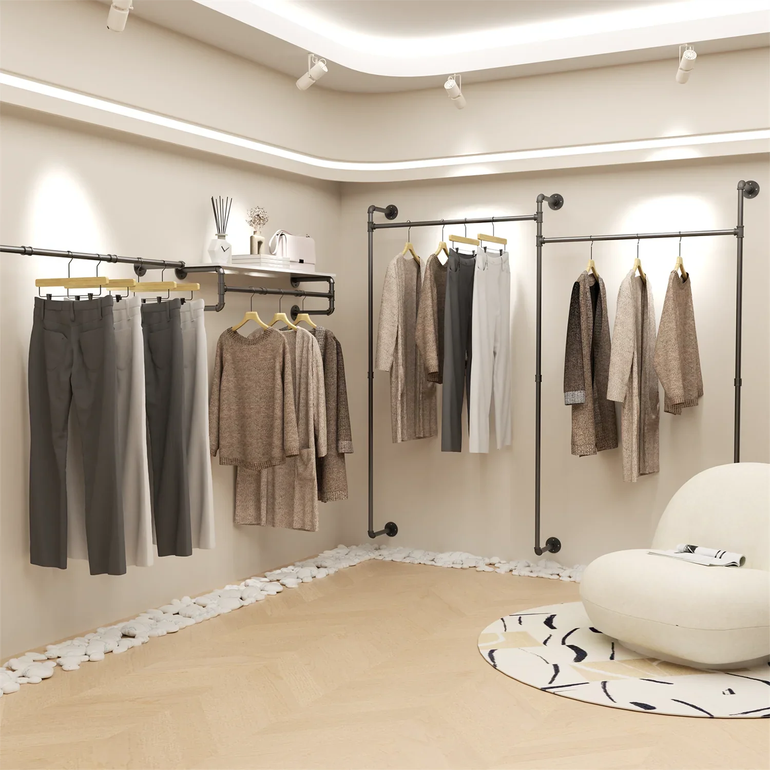 80.7 Inch Long Industrial Pipe Clothes Rack Double Clothes Rail Loft Residential Tidy Wardrobe Wall Clothing Hanging Rack