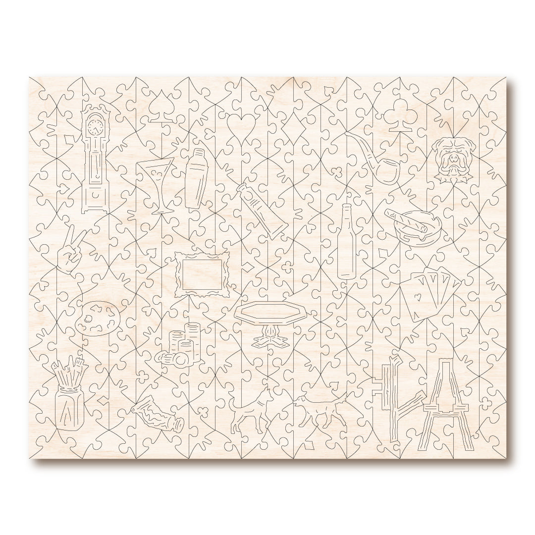 This delightful 250 piece puzzle contains over 20 whimsy pieces, many of them multipart. Unique connectors including our signature 'V' plus card suit knobs will enhance your puzzling experience!
