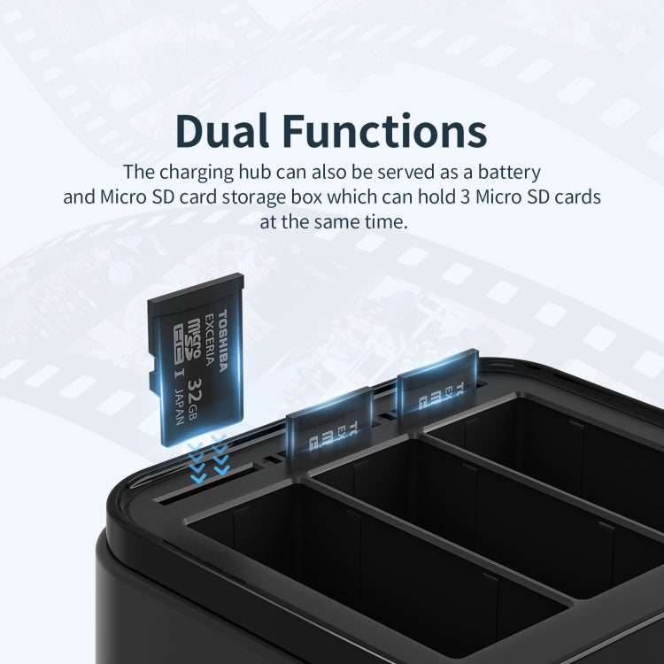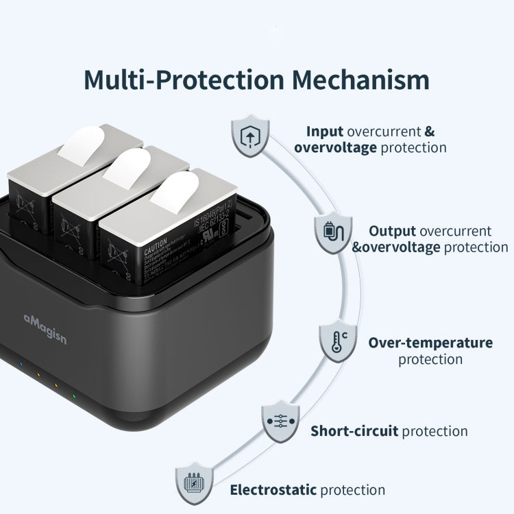 1. Individually powered, triple-connected charging slots for charging three batteries at the same time at maximum power