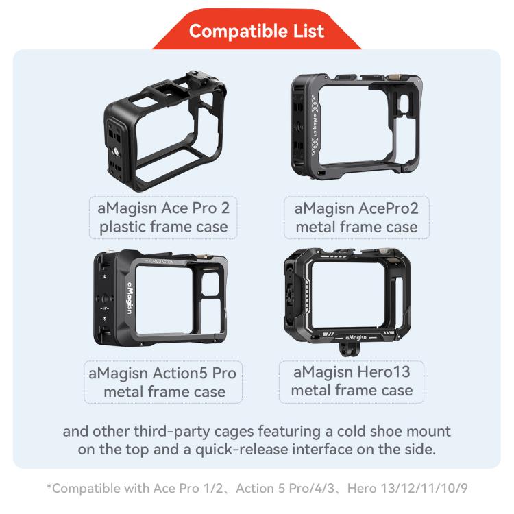 3. Compatible with Multiple Quick-Release/Cages: Works with cages featuring a top cold shoe mount and side quick-release interface.