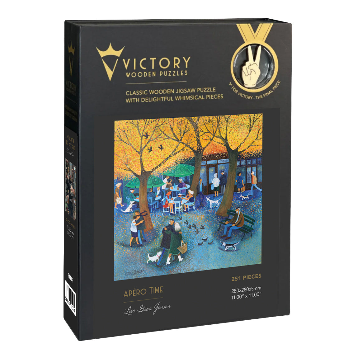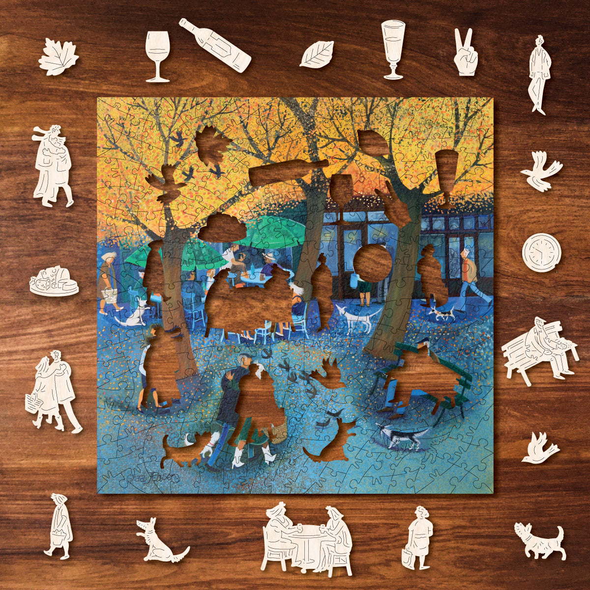 This puzzle celebrates the joy of getting together for a quick drink and snack with friends in a typical French outdoor cafe - you'll love the beautifully themed whimsy pieces in this one!