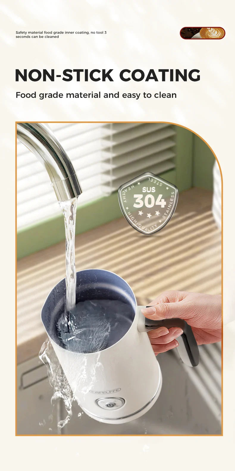 Create café-quality drinks at home with this fully automatic electric milk frother. This versatile appliance froths and warms milk for cappuccinos, lattes, hot chocolate, and more with just one button press.