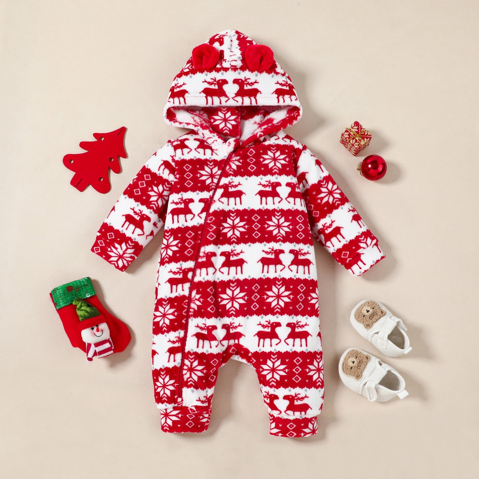 Baby Girl Christmas Tree Print Plush Jumpsuit