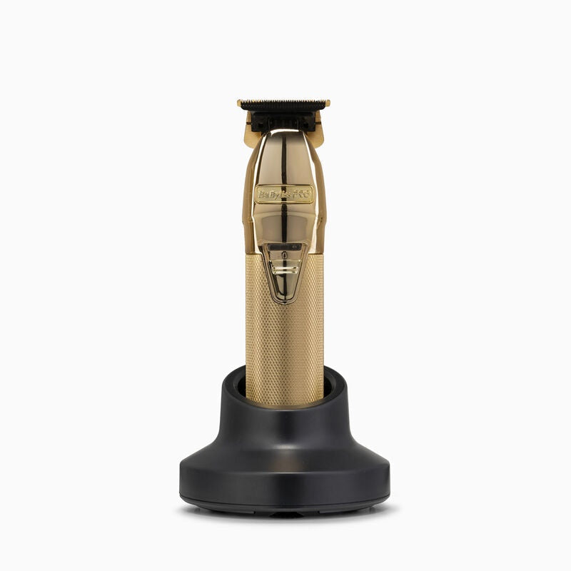 Babyliss Pro Cordless Super Motor Skeleton Trimmer Gold features a fully exposed T-blade to provide total visibility whatever position the trimmer is held in, delivering outstanding close-cut performance. Perfect for hard edges, sharp outlines and all precision detail work, this heavy-duty professional outliner with extra-wide Japanese steel blade also has a zero-gap function for optimum accuracy.