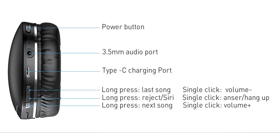 Built-in 450mah high-capacity lithium batteries have 10ma of low power consumption for 50hours of continuous play once fully charged,listening to music for a whole week and 5hours a day