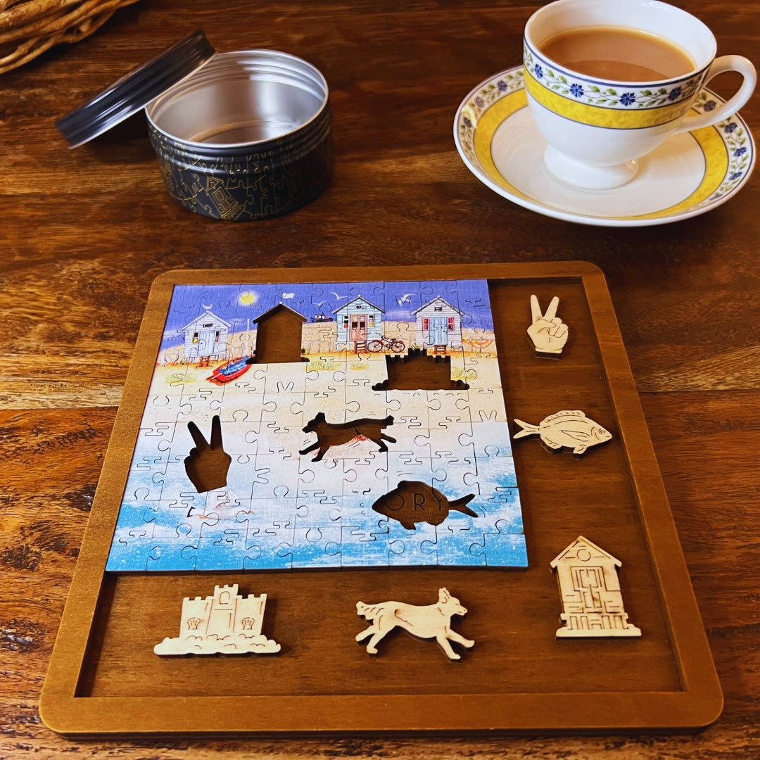 Our MINI QT puzzles are laser cut from thick, 4mm plywood and include 5 whimsies - they make a great puzzle snack!