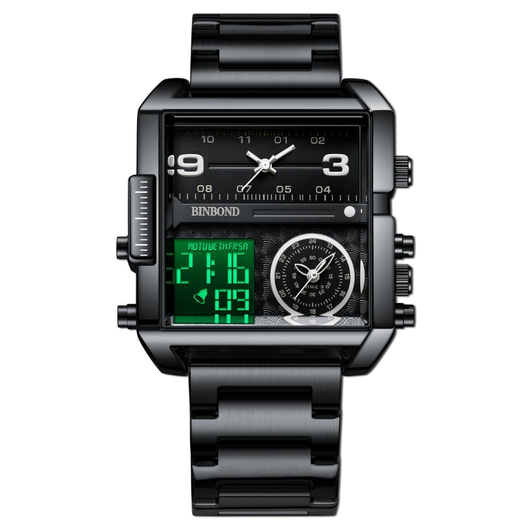 BINBOND B3332 Square Multifunctional Sports Quartz Waterproof Watch