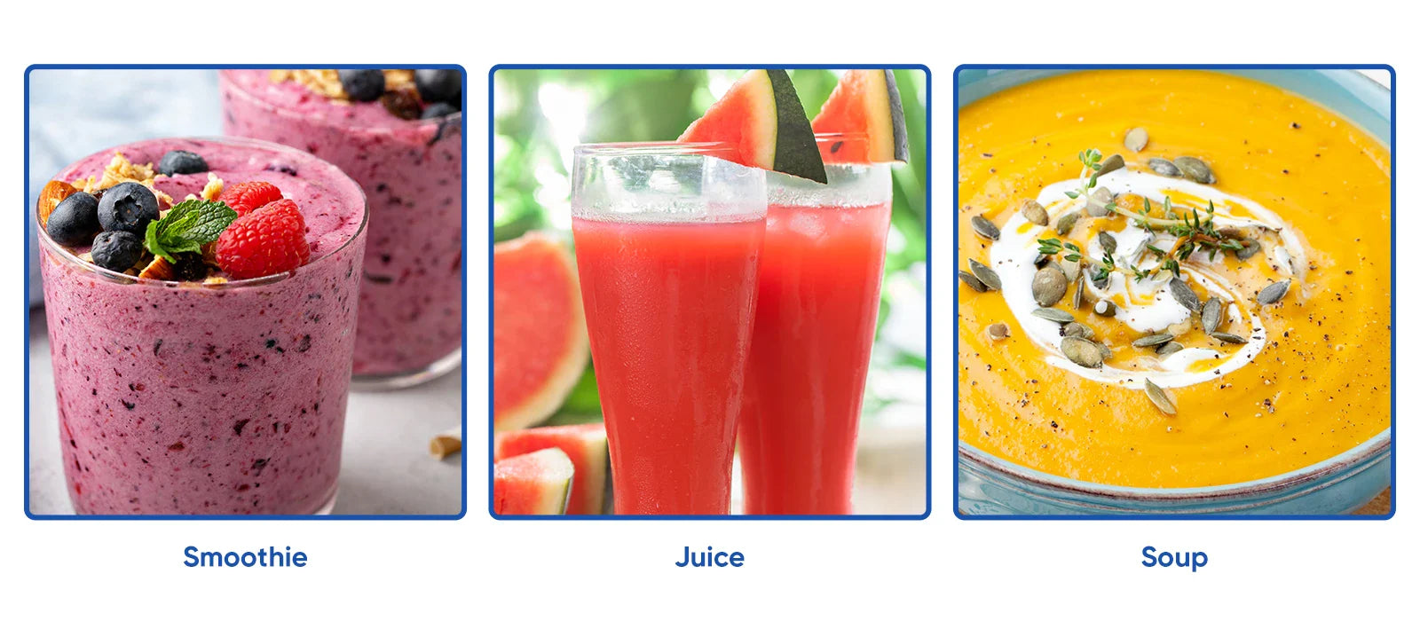 2. SUS 304 STAINLESS STEEL 4-LEAF BLADES: The cross blades allows you to blend and extract nutrients in just 15 seconds. It's ideal for making smoothies, milkshakes, soups, baby food, meringues, dips, sauces, mayo, chutney, whipped cream, salsa, guacamole & cake batters.