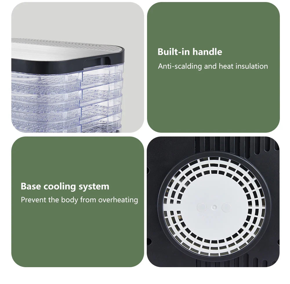 PREMIUM MATERIAL - Made of a stainless-steel base and premium plastic trays, all the materials are free of BPA, and are absolutely safe for your health; The digital LED display screen allows you to accurately time and control temperature settings; Enjoy an easy, healthy homemade snack without any additives.