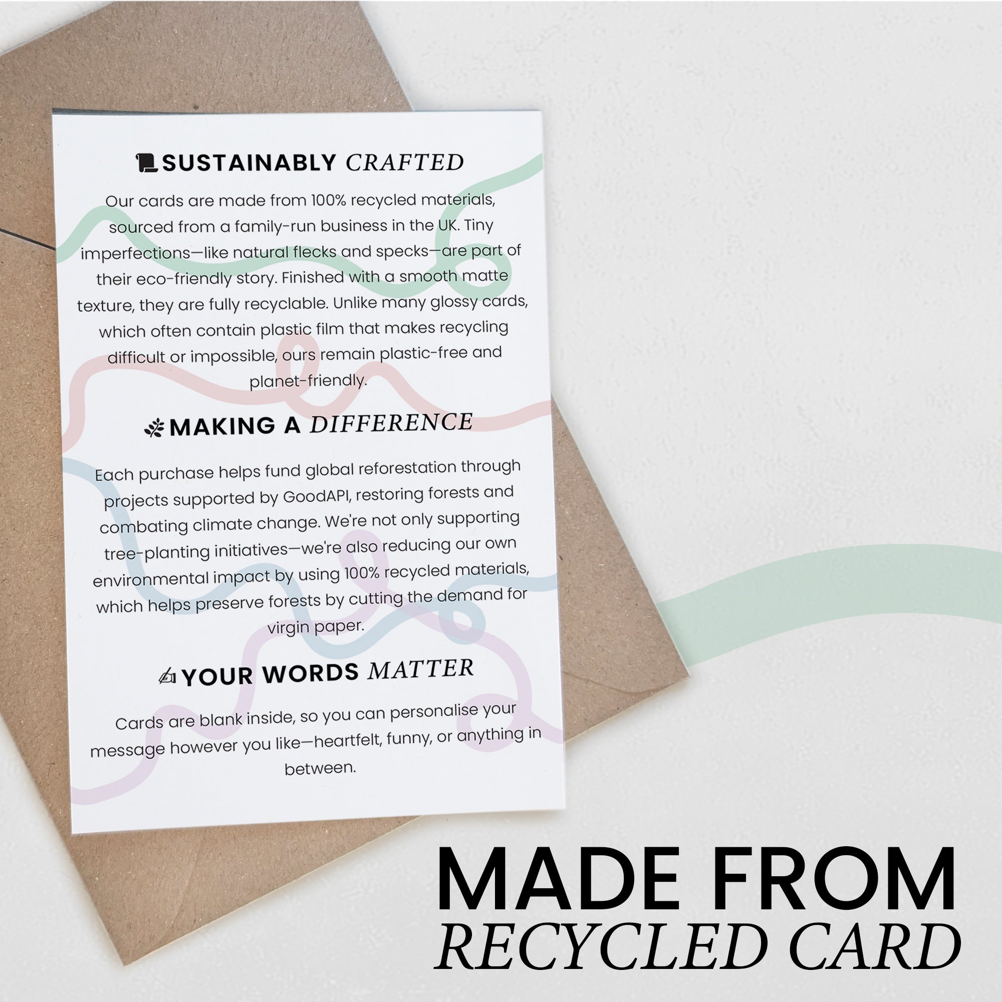 Sustainable and Stylish: Embrace sustainability with our 100% recycled 300gsm card stock. Each card may feature unique specks or dots, celebrating the beauty of recycled materials. These are not defects but rather signatures of eco-conscious craftsmanship.