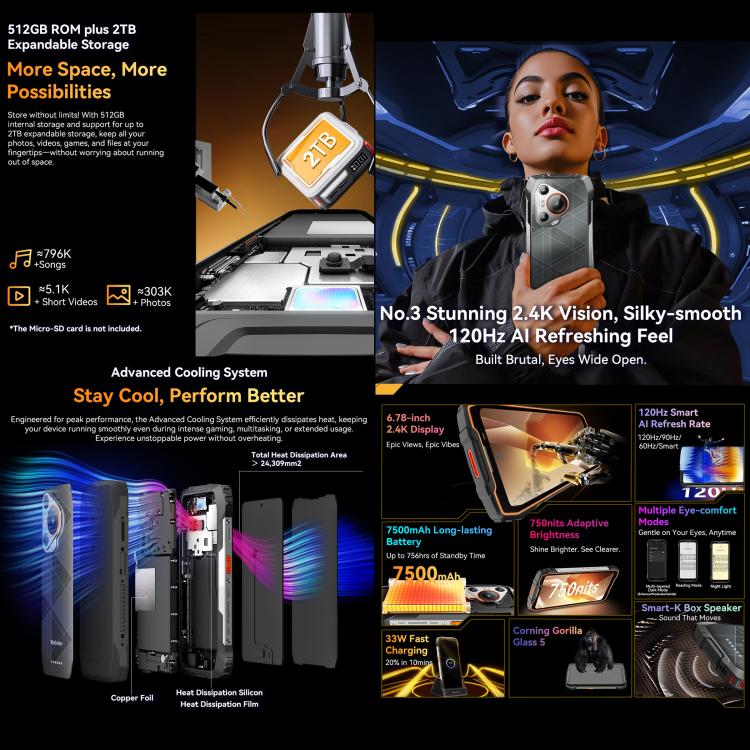 5. Memory: 8GB(can expand plus 8GB virtual) RAM +512GB ROM(optional)