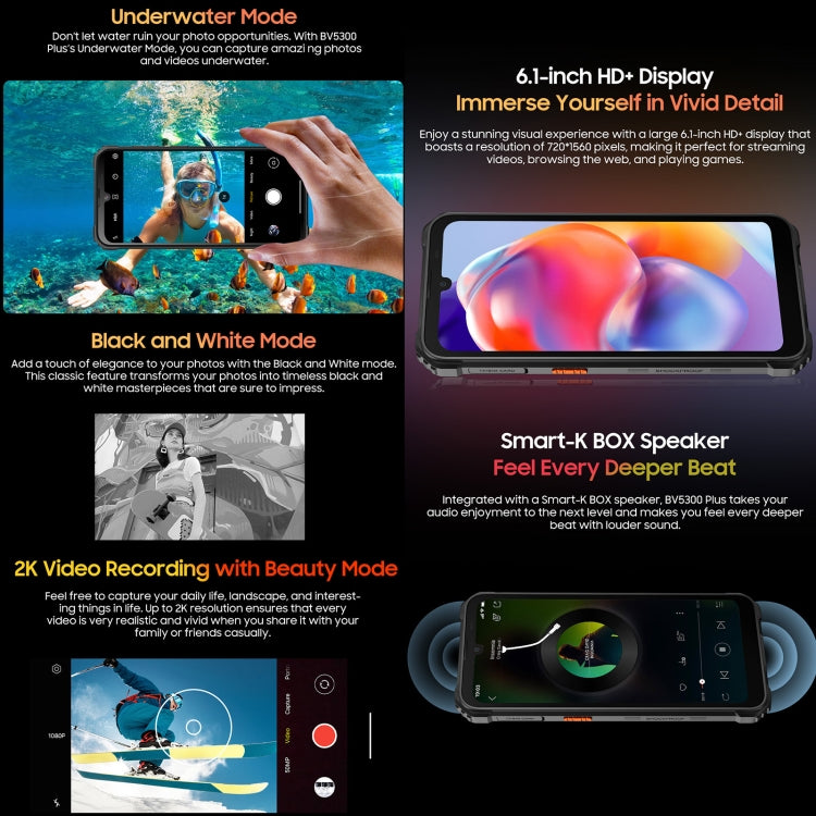 Blackview BV5300 Plus, IP68/IP69K/MIL-STD-810H, 6.1 inch Android 13 MediaTek Helio G72 Octa Core, Network: 4G, OTG