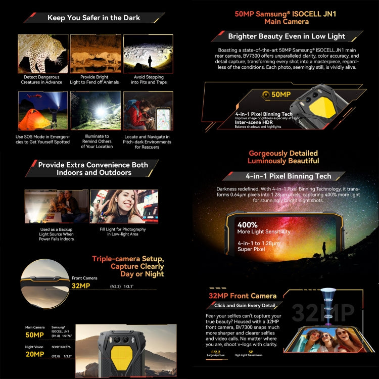 14. Protection: IP68/IP69K/MIL-STD-810H Waterproof Dustproof Shockproof