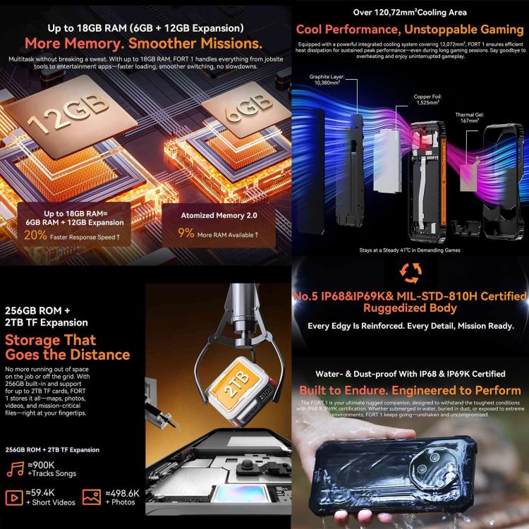 Blackview FORT 1, 6GB+256GB, 6.56 inch Android 15 Unisoc UMS9230E T615 Octa Core, Network: 4G, OTG, NFC