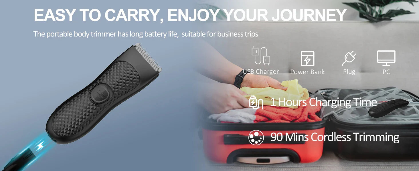 【IPX7 Waterproof】When you do Back hair trimmer / Chest hair trimmer / Pubic hair trimmer / Ball trimmer, it is easier to trim in the shower, as the water washes away the trimmings.