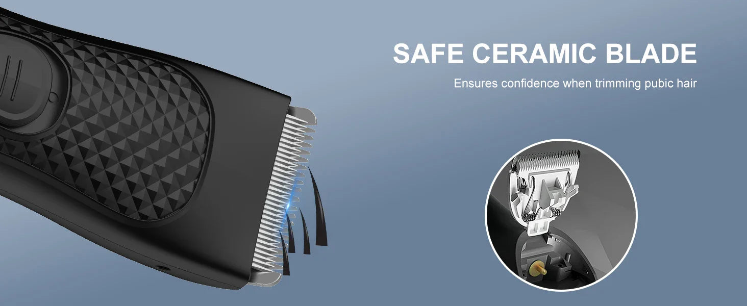【Special Care】Trimmers are professional at grooming private parts! Our trimmer is equiped with ceramic blade and titanium protective guards, so it never cut, tug, or irritate your skin while doing pubic hair trimmer or beard trimmer.