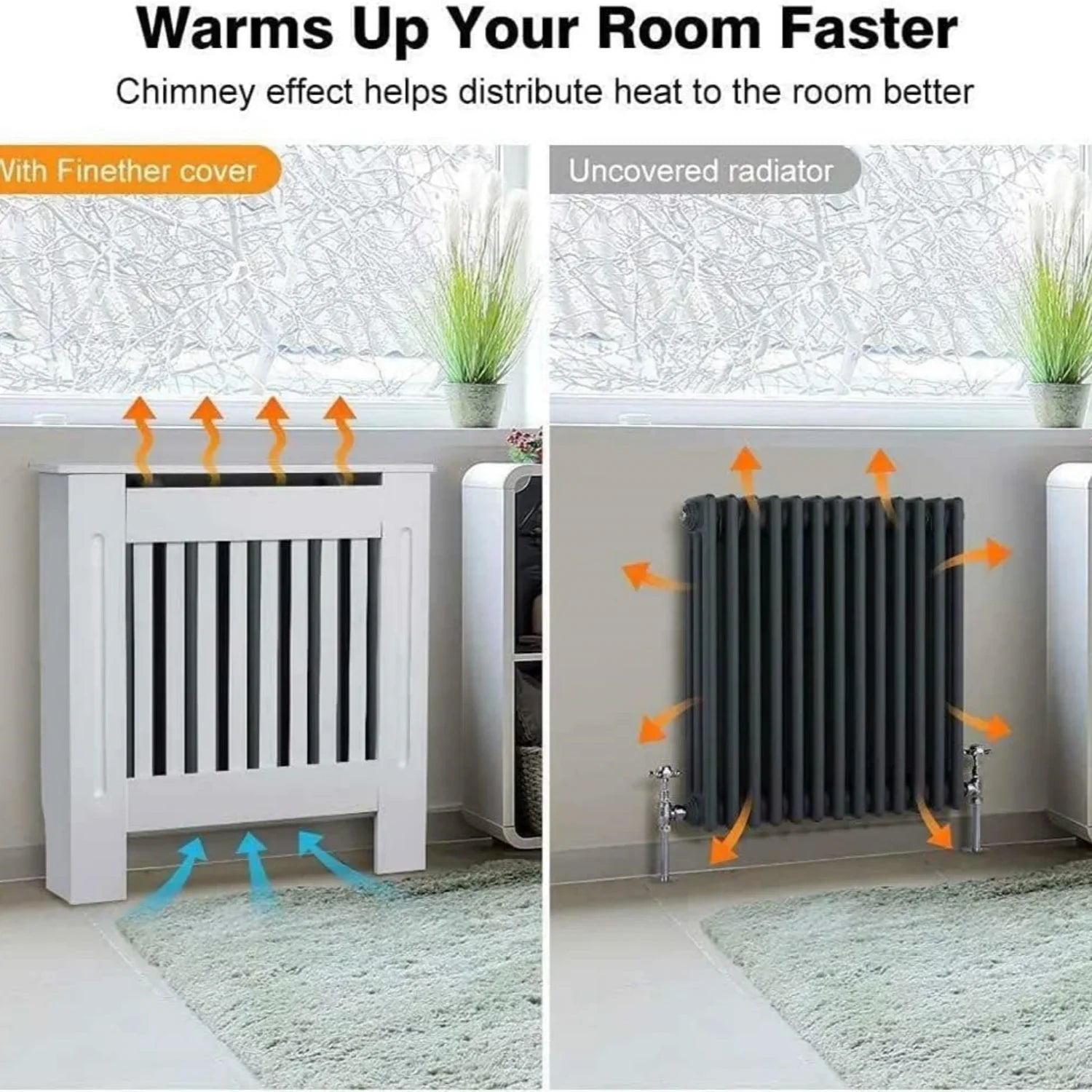 3.VERTICAL SLATS PROTECTION COVER --- Modern radiator cover with vertical slats, this living room cabinet effectively allows heat to flow through the cover and protects your hands from hot surfaces. Ideal for ensuring children or pets avoid accidentally touching hot radiators.