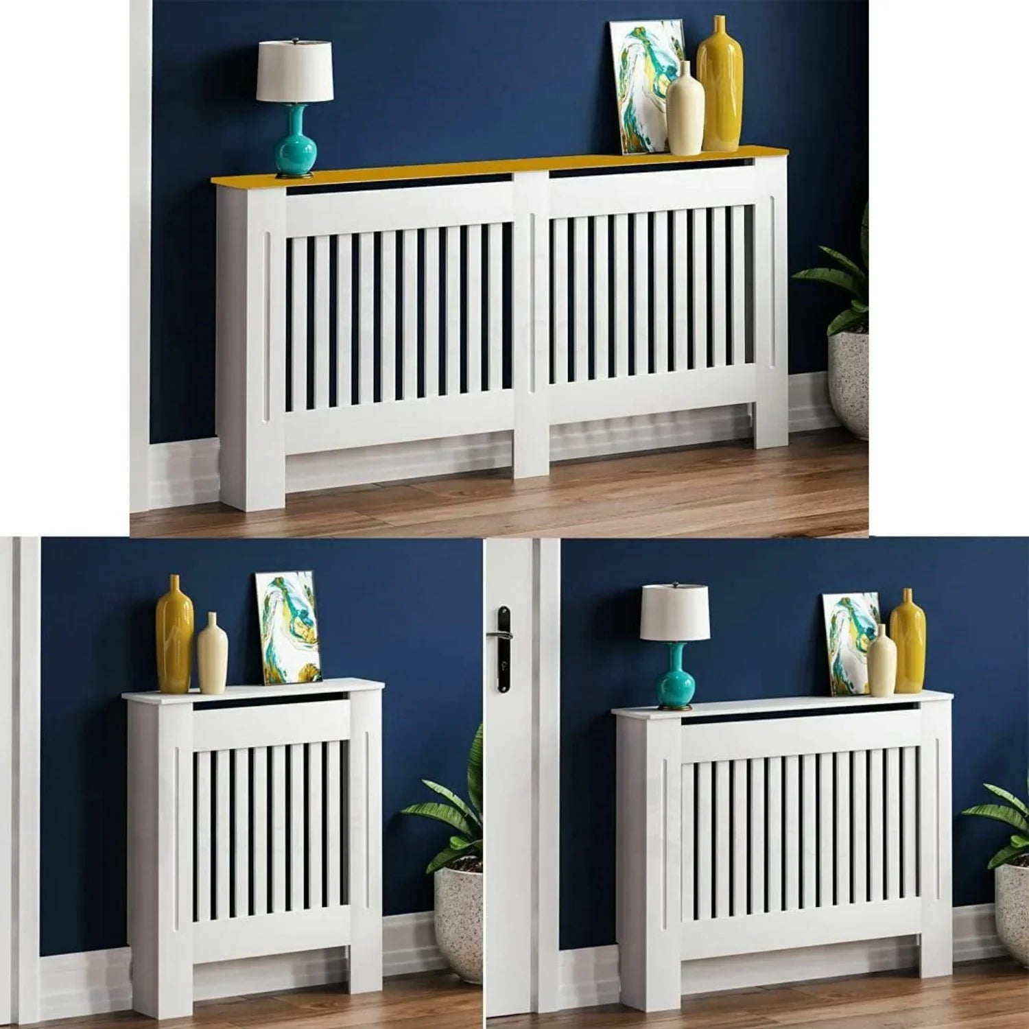 1.Radiator cover dimensions --- Small radiator cover: H 82 x W 78 x D 19 cm; Medium radiator cover: H 82 x W 112 x D 19 cm; Large radiator cover: H 82 x W 152 x D 19 cm. Panel thickness: 15 mm. If you have any questions about this radiator cover, please feel free to contact us. We will provide you with the best quality service.
