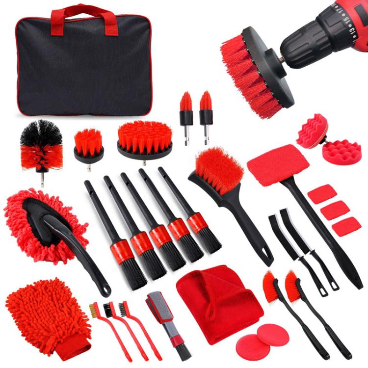 Car Cleaning Brush Set Power Drill Attachment For Vent Details Detail Brush With Sponge