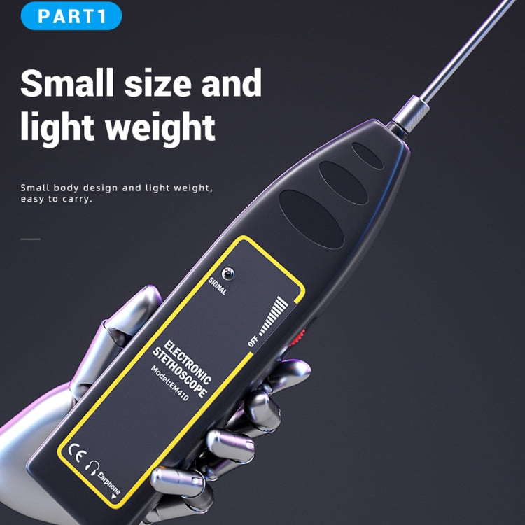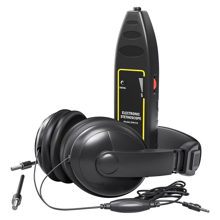 7. You can adjust the Volume/Power Switch for a desired volume.Touch the end of the probe to the desired positions of the object which you want to detect.Pay attention to the change of the sound from the earphone.Finally you can locate the position where a certain noise come from.According to the experience and the relevant knowledge,you can find the early hidden trouble or the position where a malfunction exists.