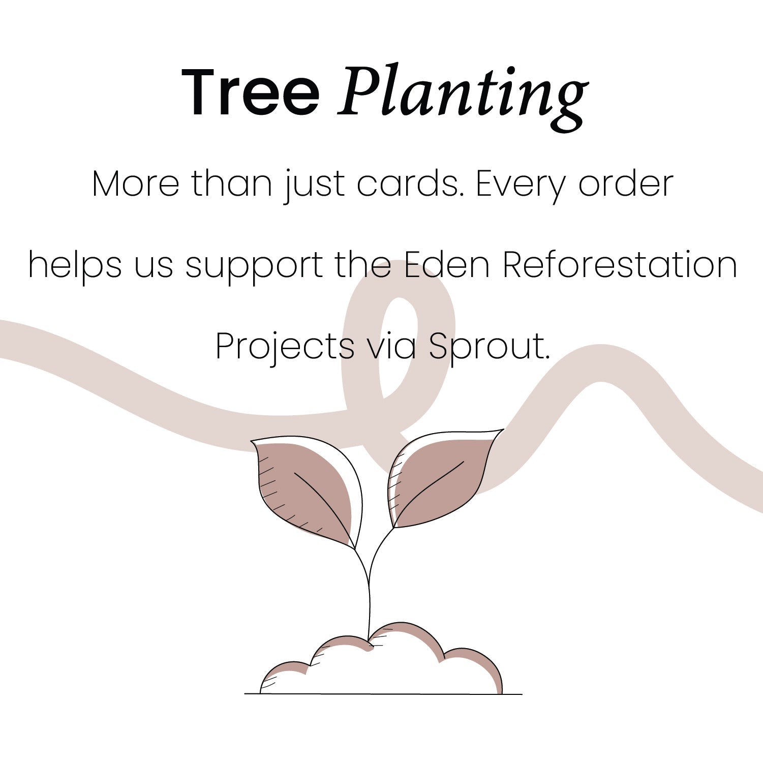 🌱 Support Reforestation: With every order, we contribute to tree planting initiatives through Sprout and the Eden Reforestation Projects. Choosing our cards helps replenish the planet's forests, making your celebration part of a larger global impact.