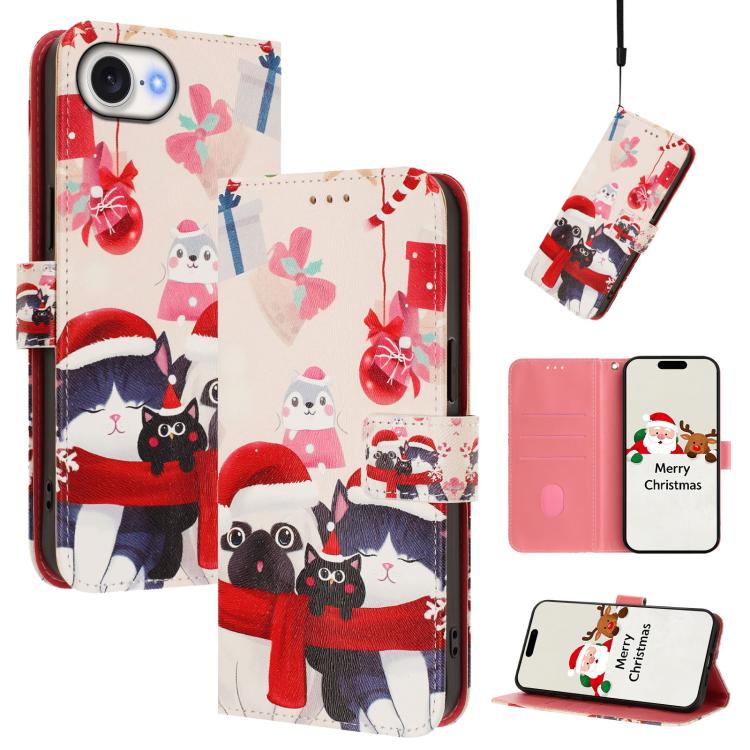 Christmas Series Buckle Leather Phone Case with Hand Strap, For iPhone 16e, For iPhone 16 Pro Max, For iPhone 16 Pro, For iPhone 16 Plus