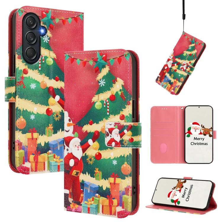 Christmas Series Buckle Leather Phone Case with Hand Strap, For Samsung Galaxy A16 5G / 4G, For Samsung Galaxy A05s / F14 4G, For Samsung Galaxy M35 5G, For Samsung Galaxy M55 5G / C55 5G