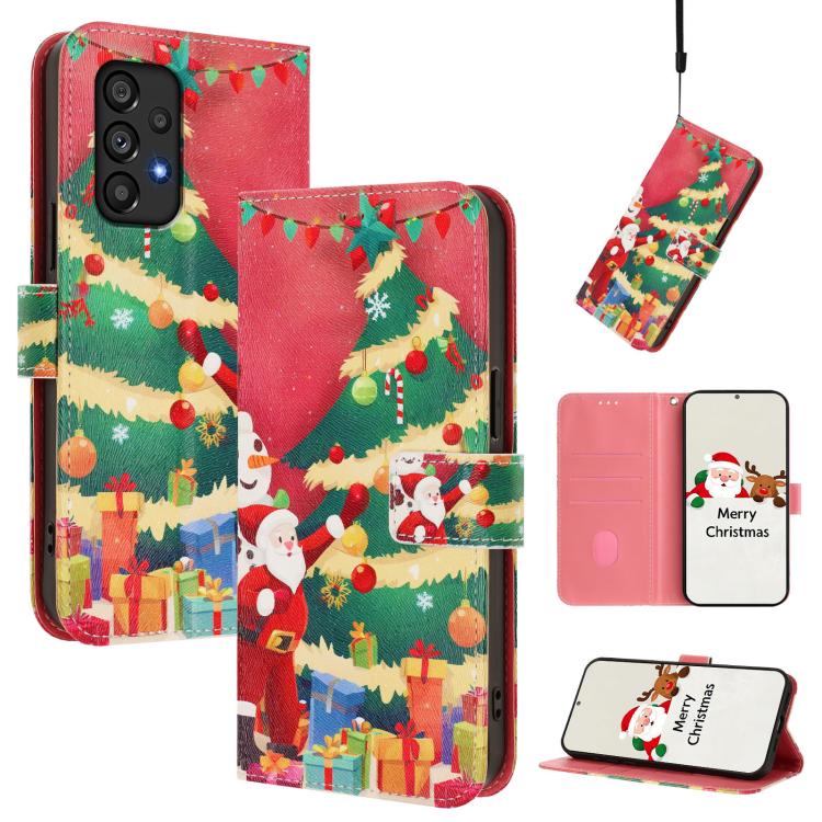 Christmas Series Buckle Leather Phone Case with Hand Strap, For Samsung Galaxy M33 5G, For Samsung Galaxy A53 5G, For Samsung Galaxy A73 5G, For Samsung Galaxy A33 5G