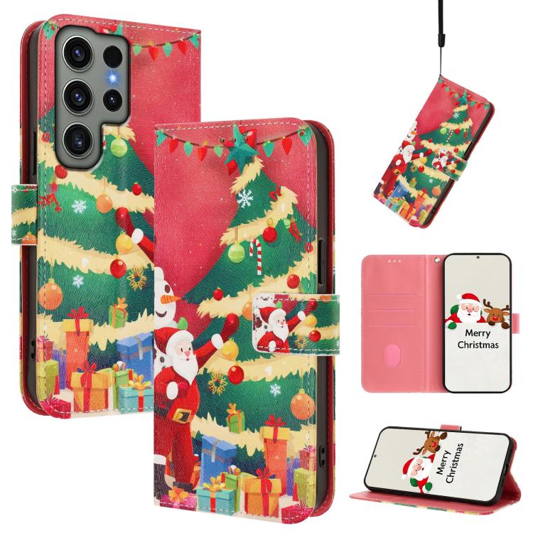 Christmas Series Buckle Leather Phone Case with Hand Strap, For Samsung Galaxy S24 Ultra 5G, For Samsung Galaxy S23 FE 5G, For Samsung Galaxy S23 Ultra 5G, For Samsung Galaxy S23+ 5G