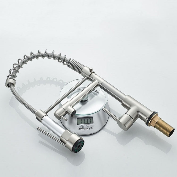 Copper And Nickel Brushed Double Outlet Spring Faucet Rotatable Kitchen Hot And Cold Water Faucet, Brushed Silver