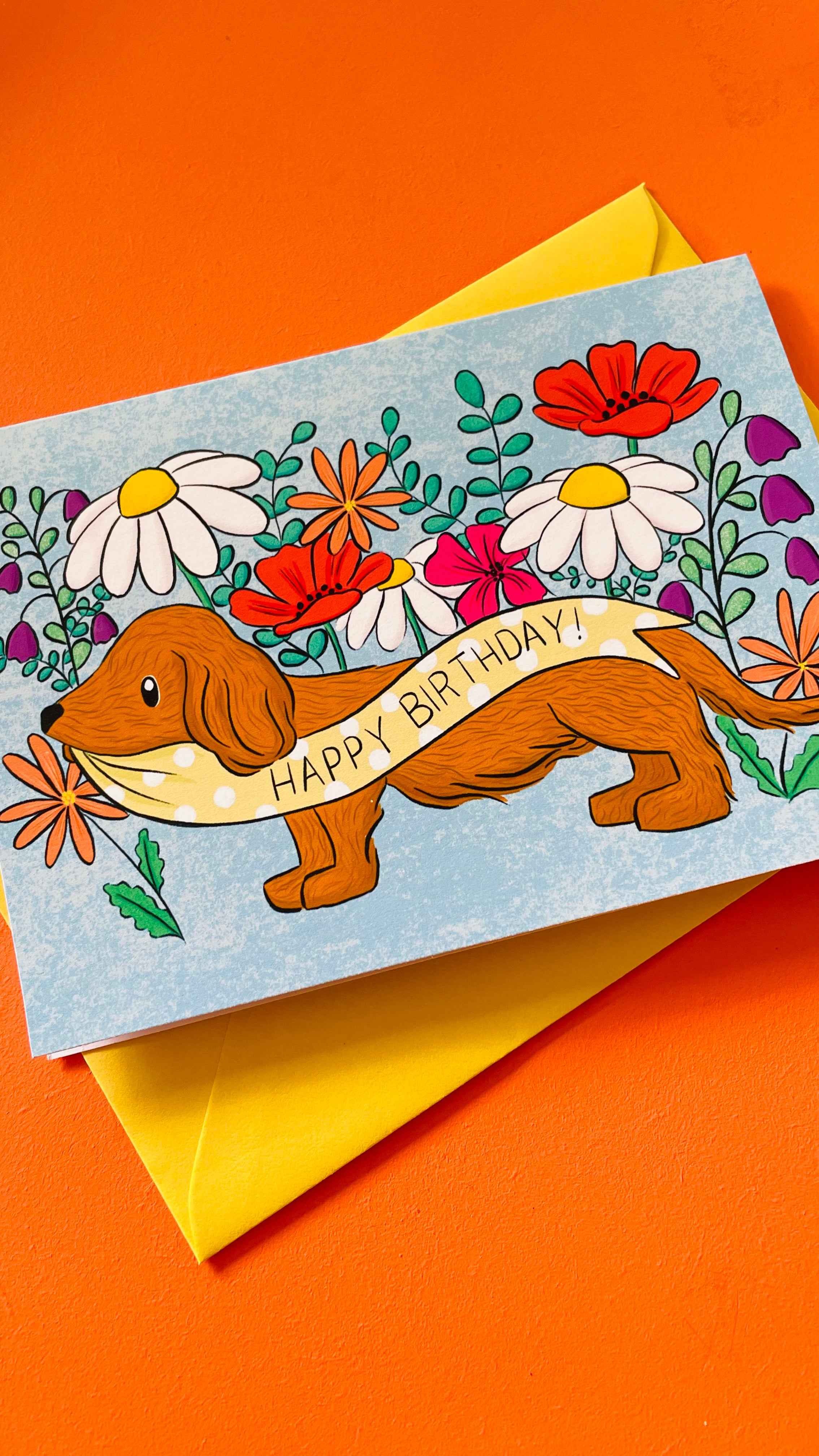 Daschund Illustrated Birthday Card