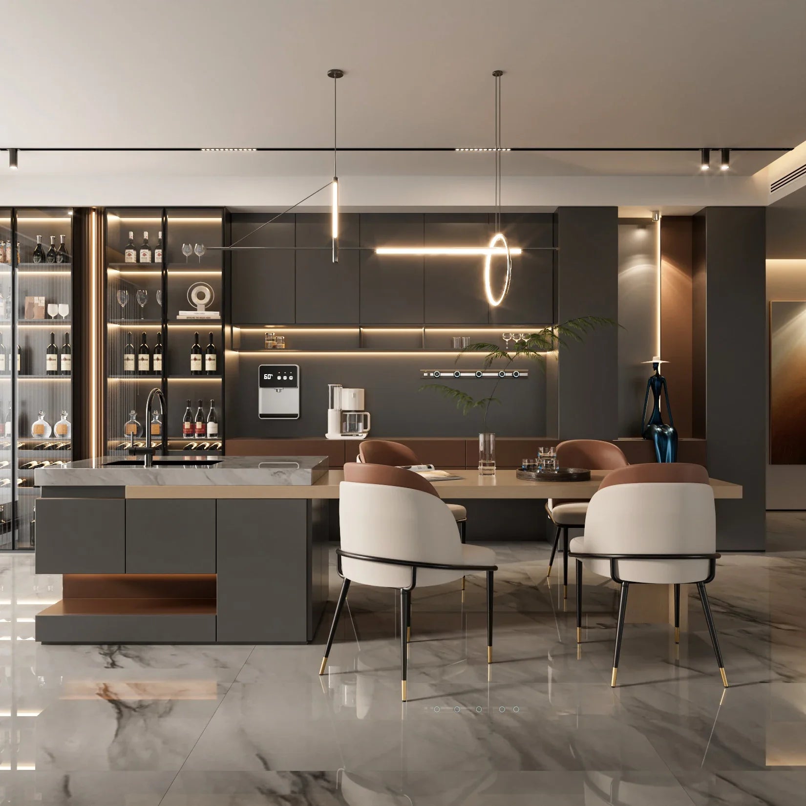 These dining chairs with unparalleled detail and stylish two tones design. From the breathable microfiber silicone leather to the carefully crafted metal legs, and curved backrest. every aspect has been thoughtfully considered. They will elevate your dining room to a whole new level, perfectly paired with our upscale dining tables