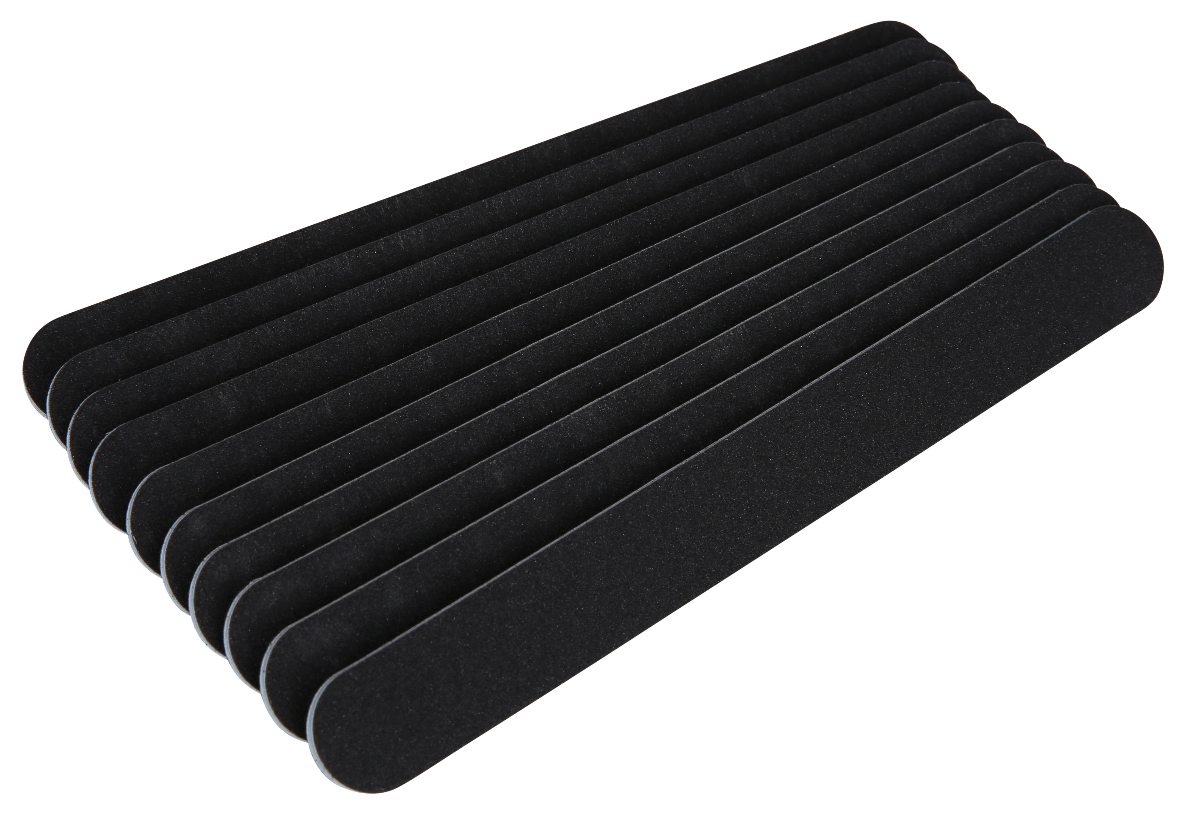 The Edge Duraboard Curved File 100/180 is made from Silicon Carbide. It is coarse/med grit.This black 100/180 washable, cushioned nail file is specially designed for professionals or home use. This extra cushioned nail file provides for a better grip, ease of use and allows for more control and faster refinement. Product Features