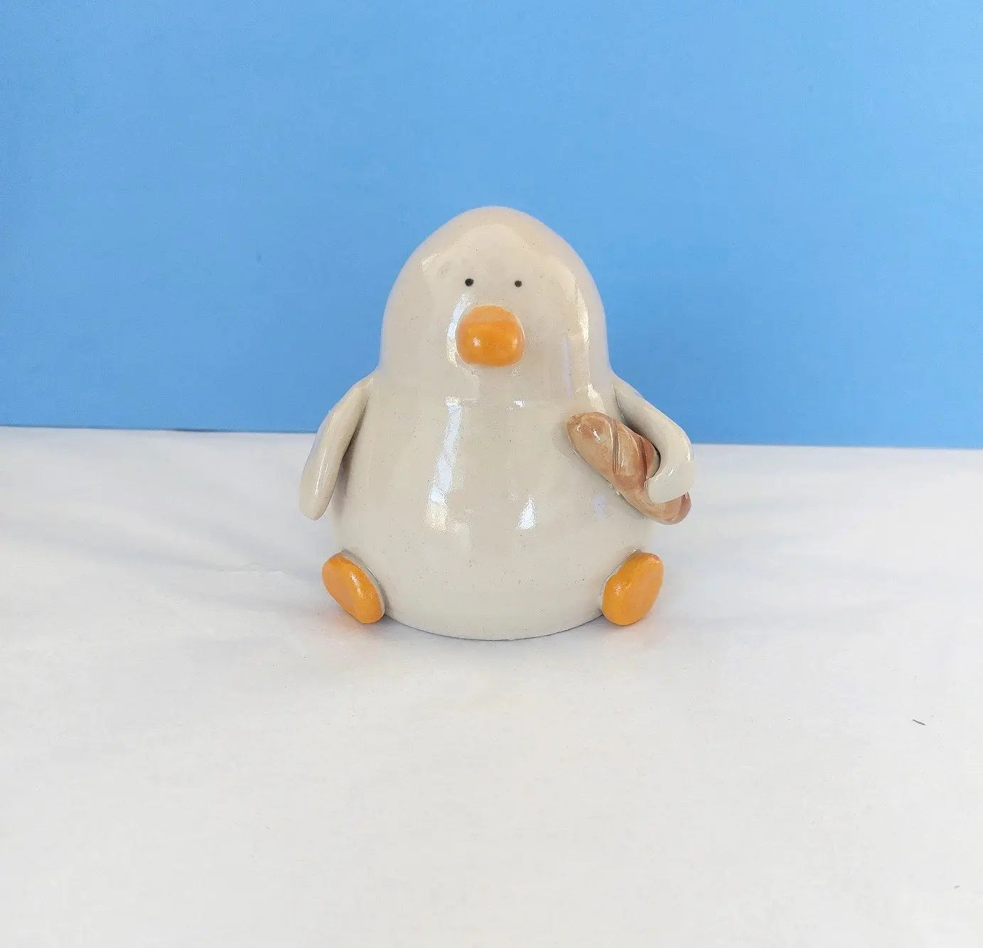 Ed with the Bread has been my most popular ceramic friend since he was born back in 2020 and you too can welcome him into your home, or gift him to the breakfast-lover in your life. Sporting a bit of a vacant gaze whilst he considers the price of flour, or maybe has an existential crisis whilst he thinks about his other bread-loving friends, this little duck is the perfect companion for your desk, or the kitchen mascot for those days of baking.