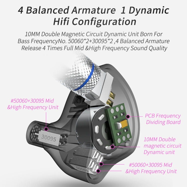 1. One side 1 dynamic 4 balanced armature configuration2. Mid & high frequency balanced armature unit3. Large...