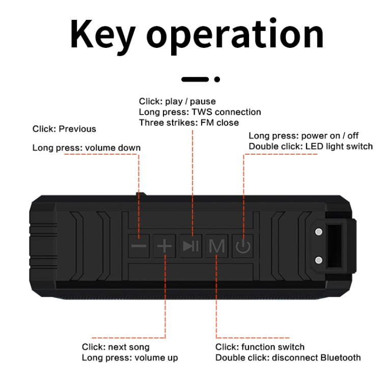 9. Special functions: wireless Bluetooth, TF card, call, U disk, LED light, power bank function, IPX7 waterproof