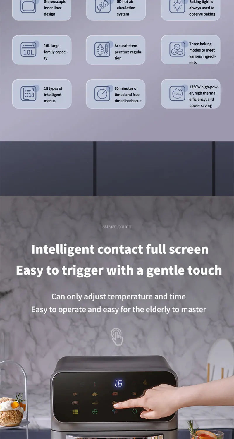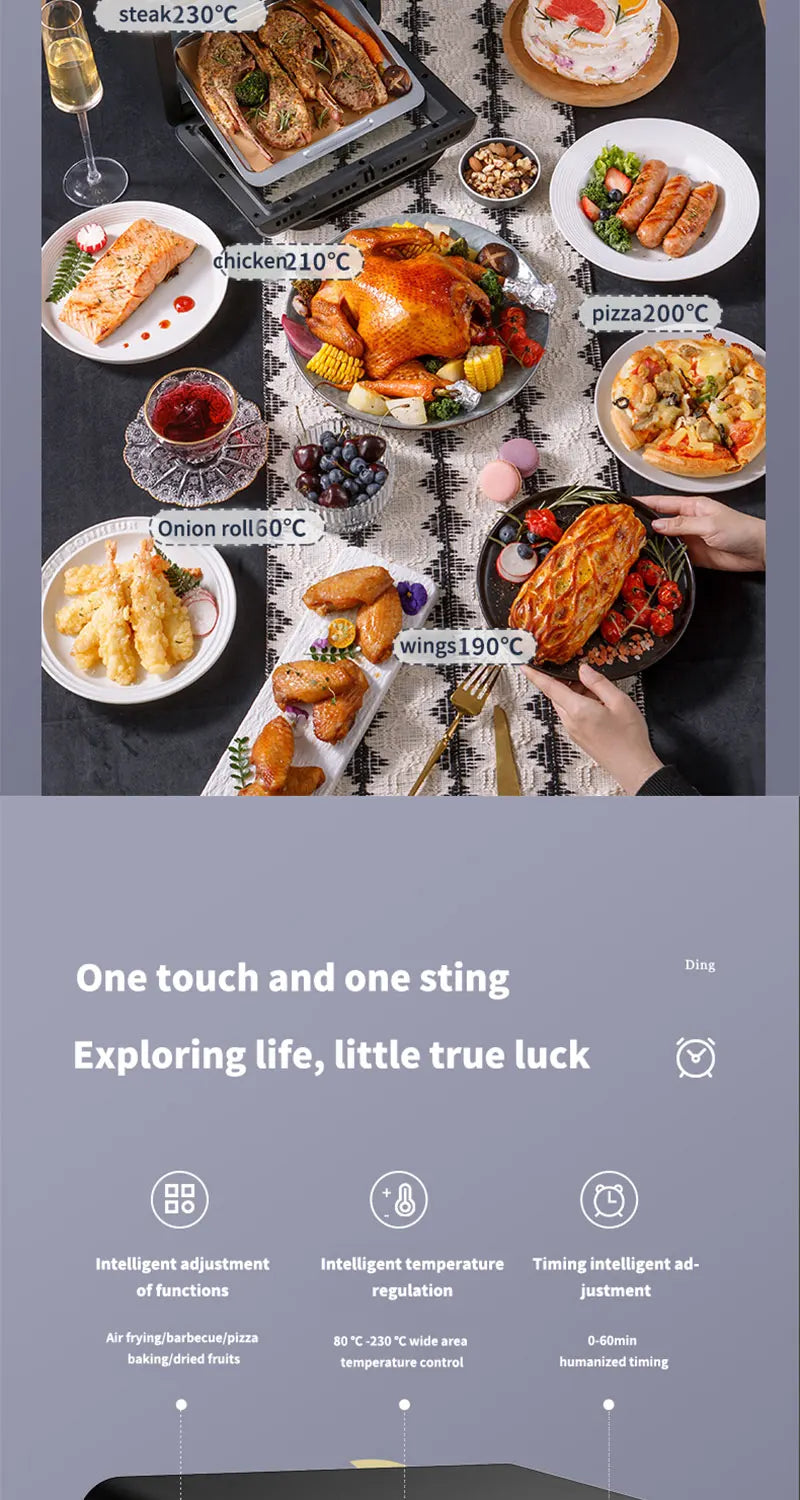 Electric Hot Air Fryer, 12L Large Capacity, 90% Less Oil, Convection Oven Deep Fryer, 360°Baking Viewable Window, Home Appliance