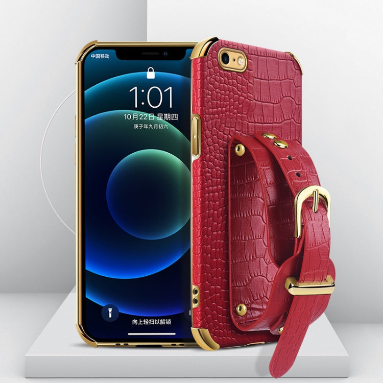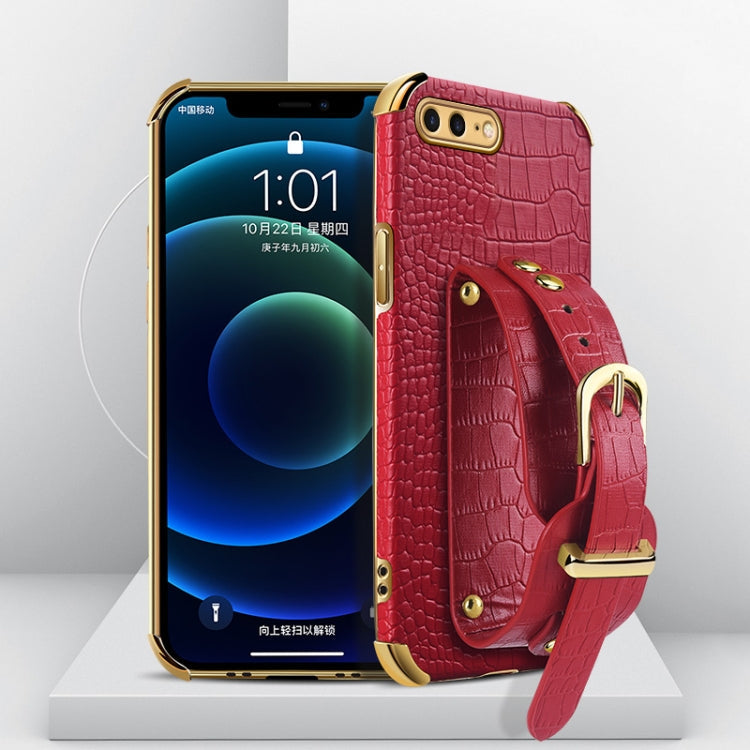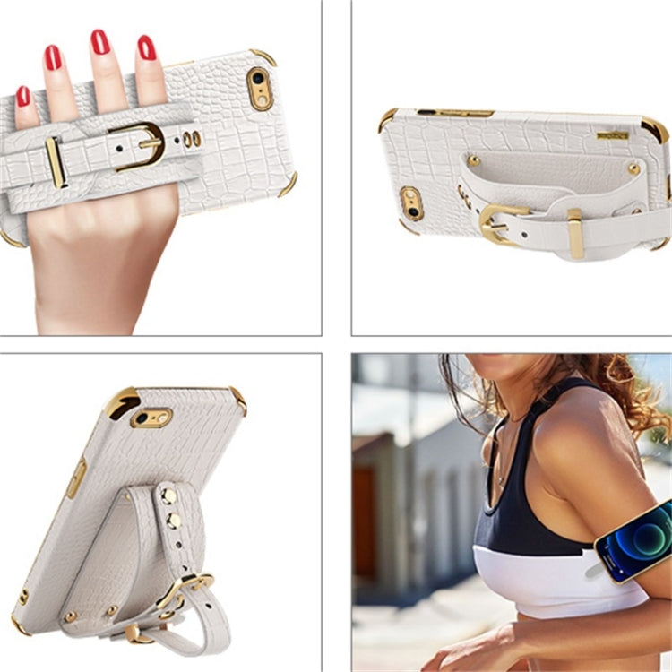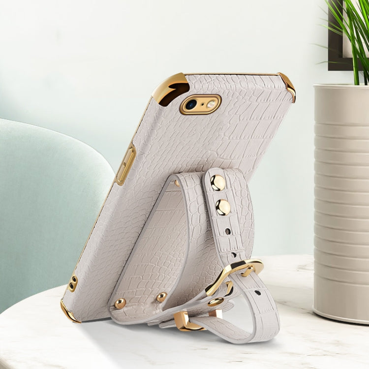 Electroplated TPU Crocodile Pattern Leather Case with Wrist Strap, For iPhone 6, For iPhone SE 2022 / SE 2020 / 8 / 7, For iPhone 8 Plus / 7 Plus, For iPhone XS / X