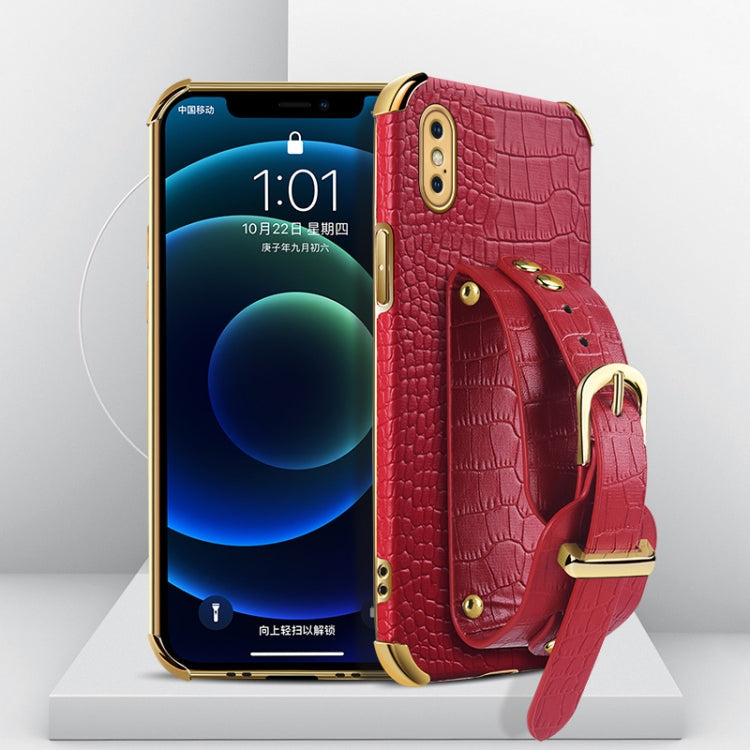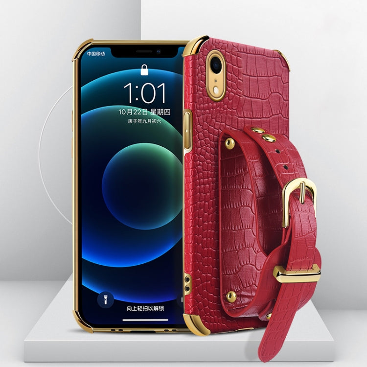 Electroplated TPU Crocodile Pattern Leather Case with Wrist Strap, For iPhone XR, For iPhone XS Max, For iPhone 11, For iPhone 11 Pro