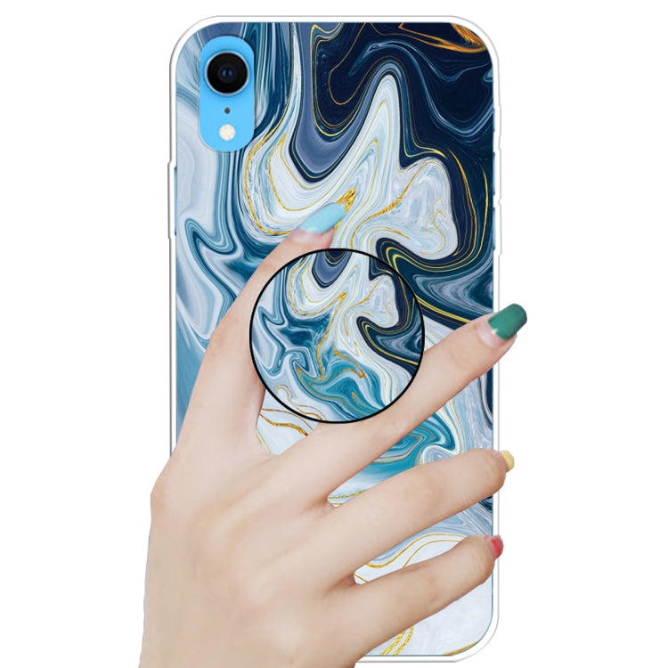 Embossed Varnished Marble TPU Protective Case with Holder, For iPhone XR