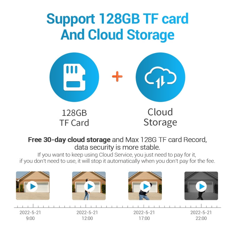 7. Support cloud storage and 128G TF card local storage